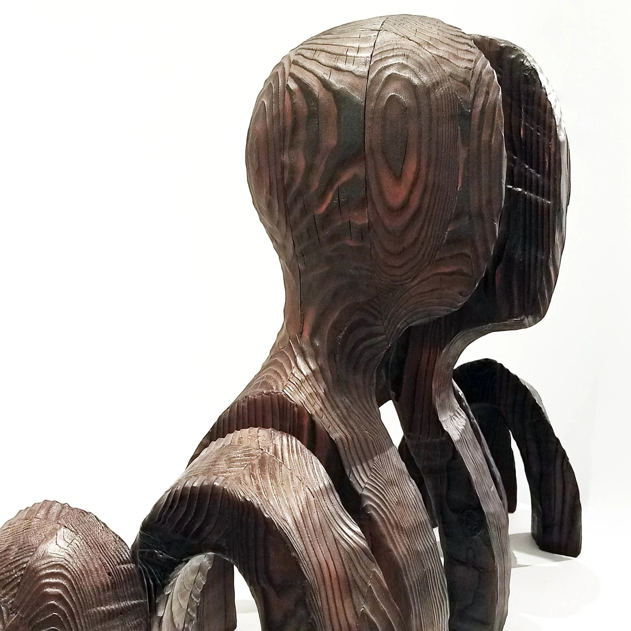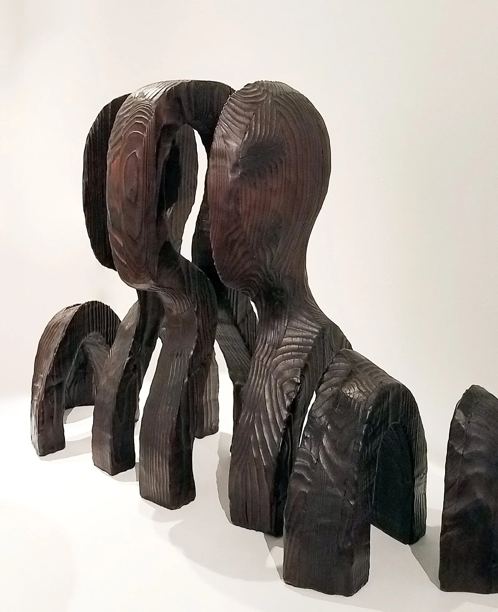 (detail) “Division 1”, burnt wood, 26” x 22” x 18”
