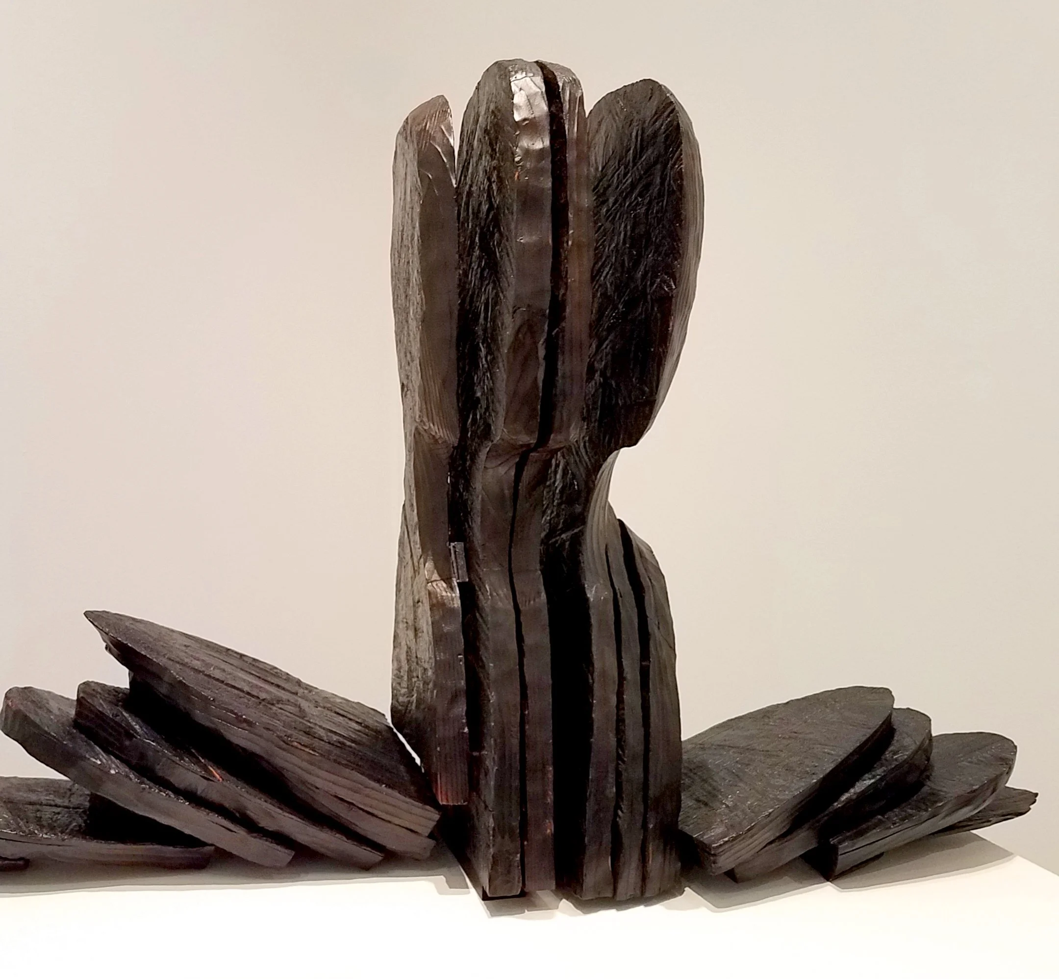 “Division 4”, burnt wood, 26” x 35” x 14”