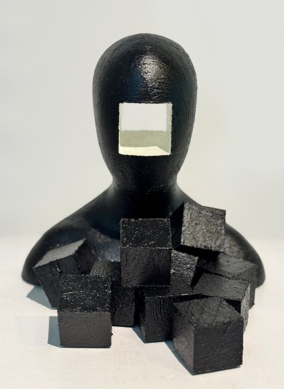 “More (Version 2), 8.5” x 8.5” x 8.5”, thermoplastic, rubberized tar