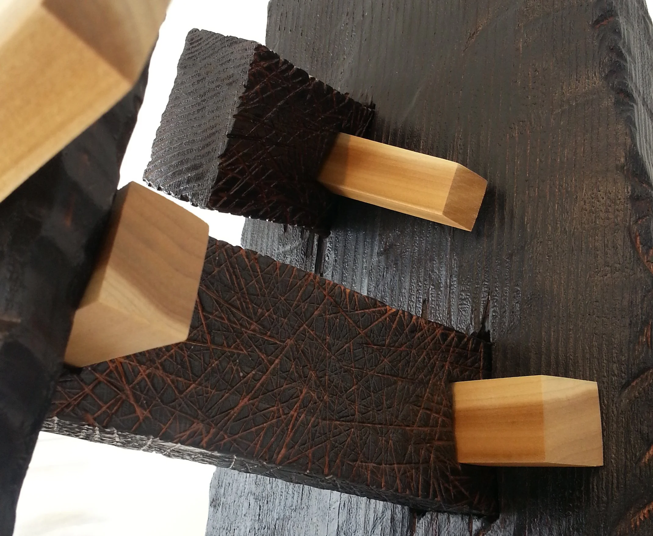 (detail) “Pierced and Joined”, burnt and natural wood, 18" x 36" x 18"