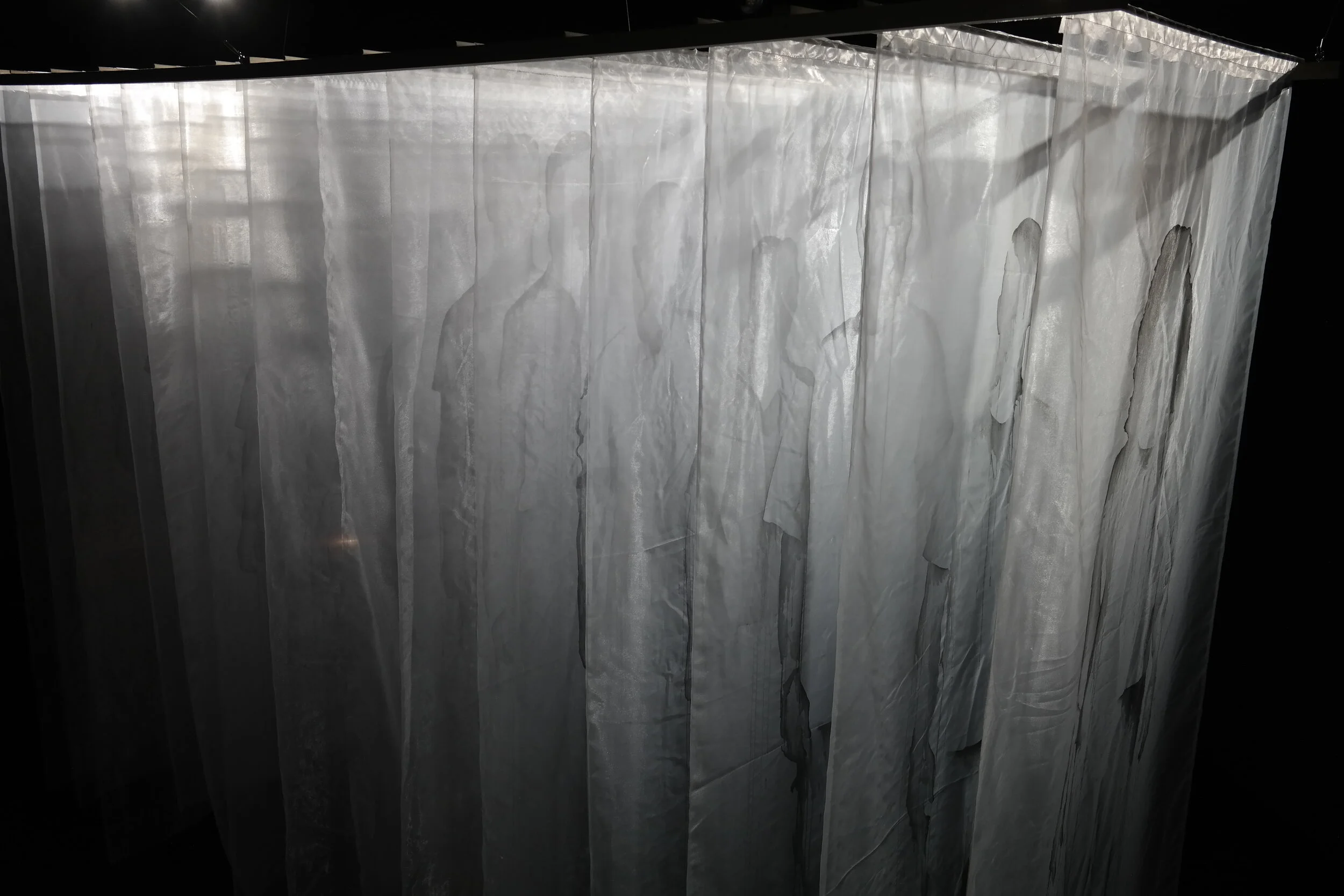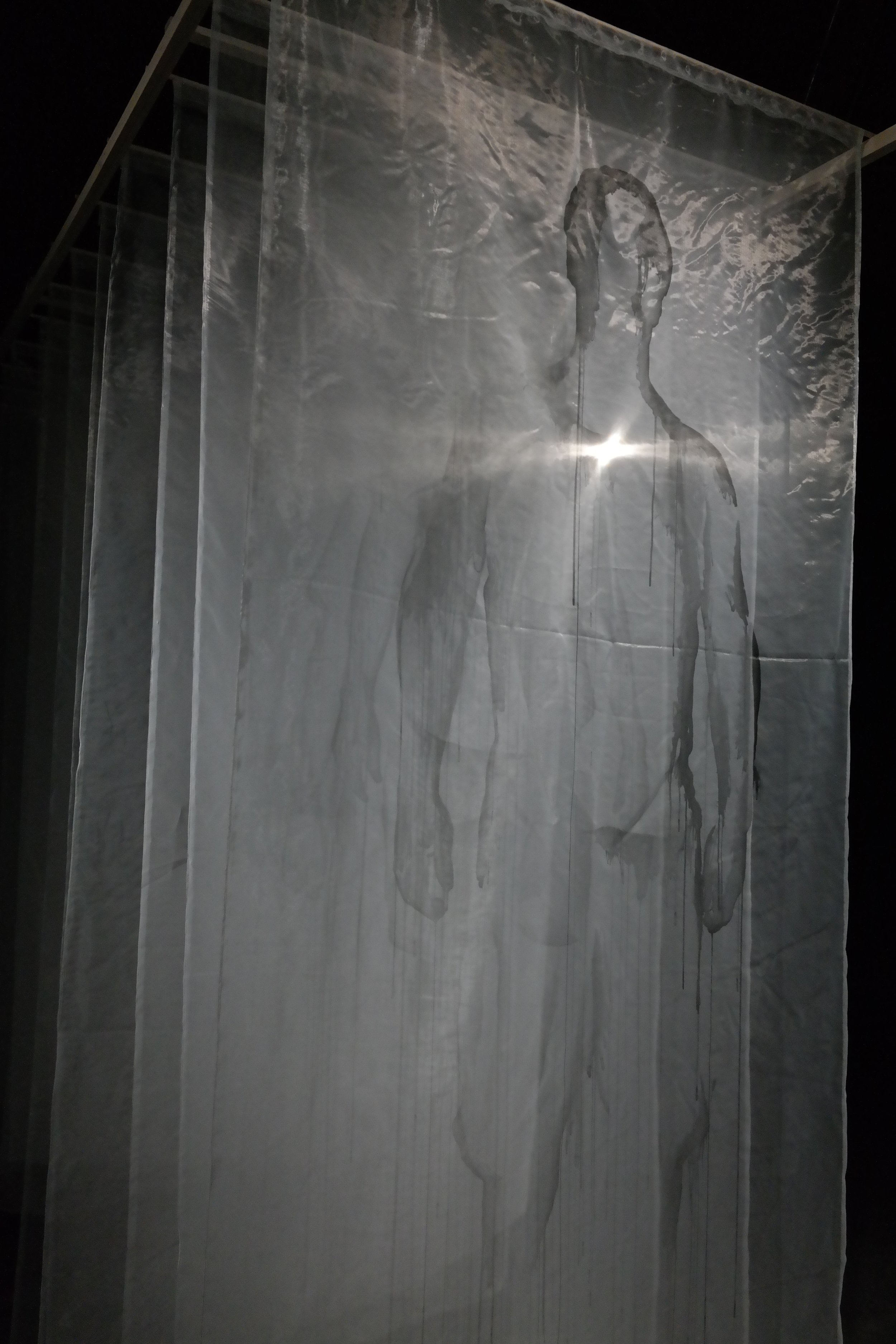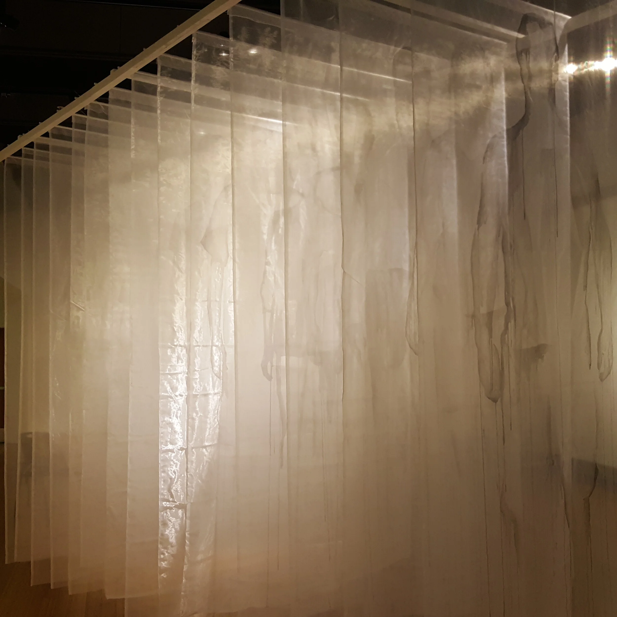“Within”, ink on chiffon fabric, 112" x 47" x 144"